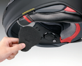 与旧款相同,耳部周围装备了防止噪音的耳罩。在耳罩板片上实施冲孔加工,即使在拆除耳罩时,也可减轻头盔内的回声。